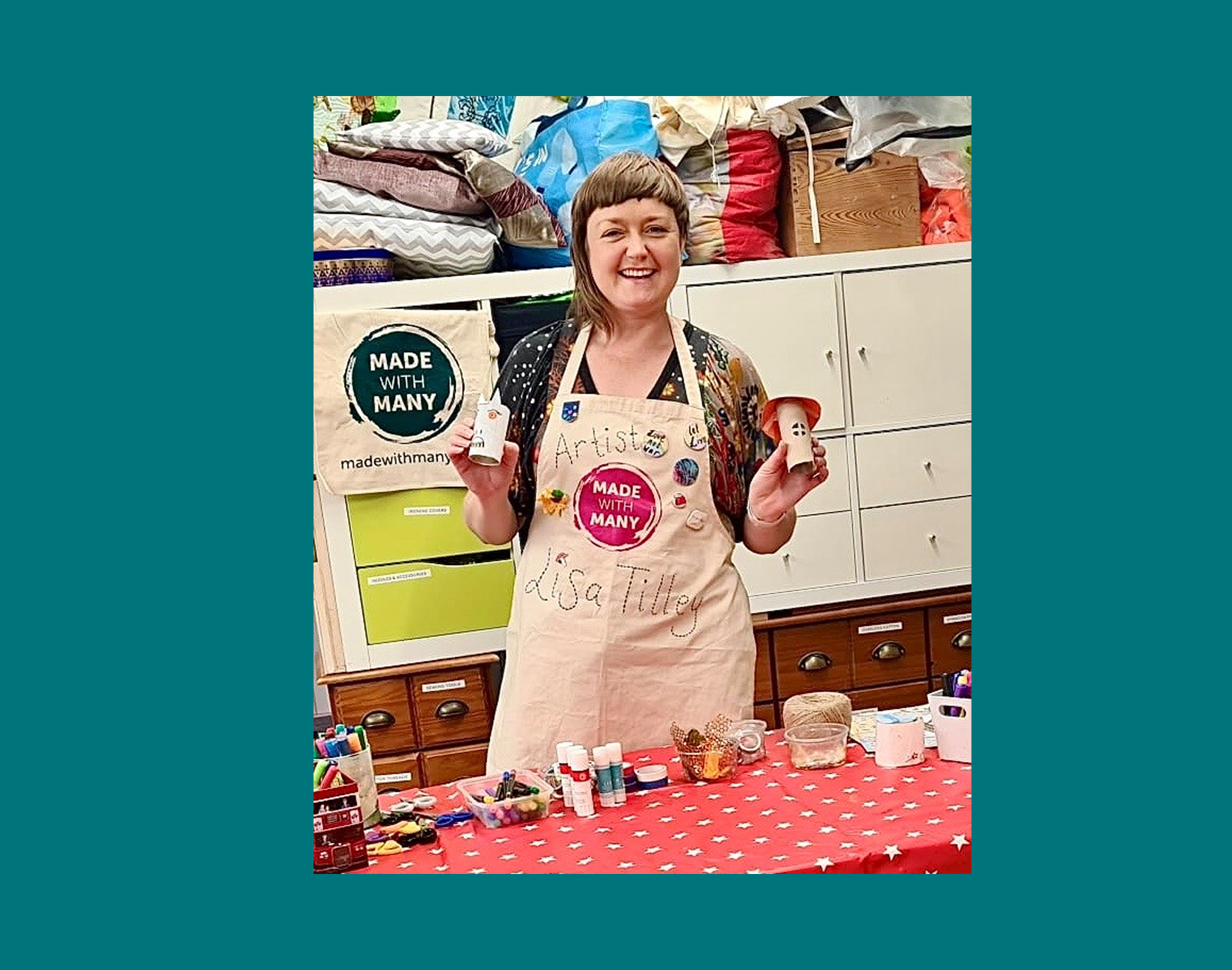 Lisa is a trained textile designer, interdisciplinary artist, maker, arts educator, community engagement artist and an inclusive arts practitioner, who has amassed a library of skills to aid both her practice and community engagement work. Lisa is mainly known for her sustainable accessories brand ‘U Old Bag!’ but also creates art using her wide range of skills mainly in textiles and up-cycling.